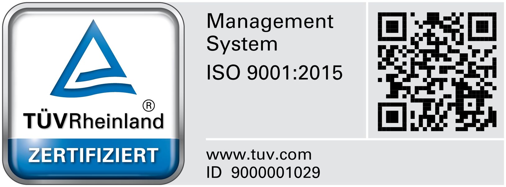 Confirmed and certified since 2010. Through the TÜV Rhineland approved quality management system in accordance with ISO 9001: 2015!